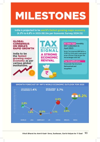 MILESTONES =]SXP Xb _a^YTRcTS c^ QT f^a[S0b UPbcTbc Va^fX]V \PY^a TR^]^\h c^ X] 5b _Ta 9R^]^\XR GdaeTh 93 Viksit Bharat ka Amrit Kaal- Seva, Sushasan, Garib Kalyan ke 11 Saal