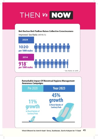 THEN Vs NOW 2024 1020 2014 * Sex Ratio at birth 45 Viksit Bharat ka Amrit Kaal- Seva, Sushasan, Garib Kalyan ke 11 Saal