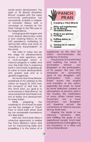 out the five pledges or 'Panch cornerstone of national success