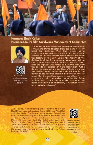 HS Kalka thanks the Prime Minister, scan the QR code to listen IS Lalpura thanks the Prime Minister on behalf of the Sikh community, scan the QR code to listen 65 65
