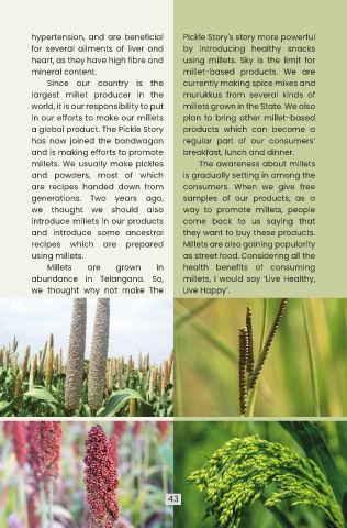 abundance in Telangana. So, millets, I would say ‘Live Healthy,