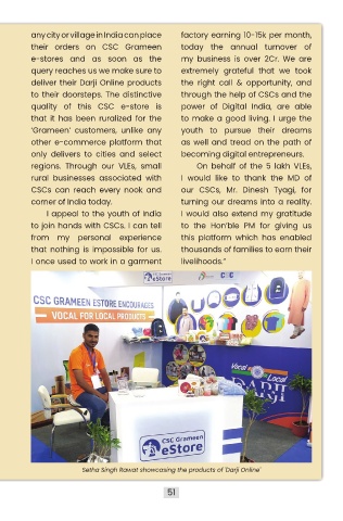 CSCs can reach every nook and      our CSCs, Mr. Dinesh Tyagi, for