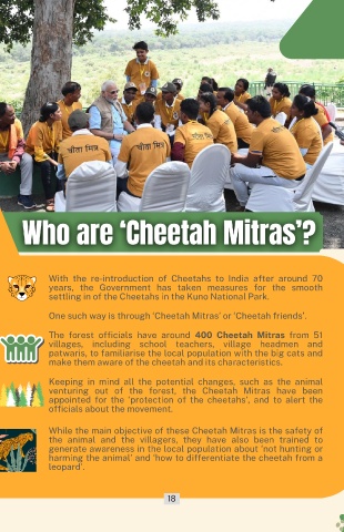 make them aware of the cheetah and its characteristics. Cheetahs are not harmful; they are our ‘Mitras’. Hence, we