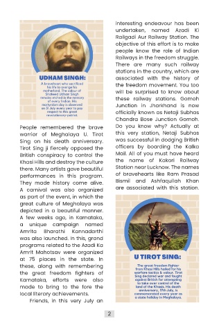 warrior of Meghalaya U. Tirot this very station, Netaji Subhas