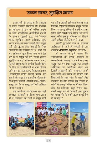 75 सागर तटों िर नागररकों ने सामूपहक अपभ्ान में सपक्र् भाग लेने के पलए पिसमें समुद्र तट के प्रत्क पकलोमीटर समुद्र तट िर एक समुद्र तट सिाई