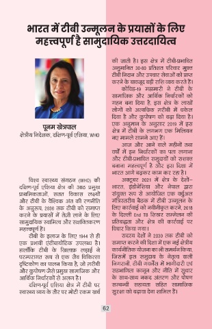 िनषटकोण का िालन पक्ा है, िो ग़रीबी पनगरानी, टीबी गवननेंस में भागीिारी एव ं Patient' (एक टीबी रोगी को अिनाएँ) करती हँ और सभी भारती्ों को टीबी-