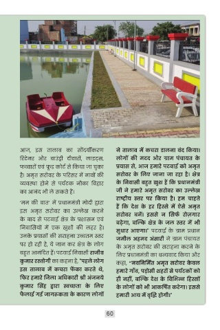आज, इस तािाब का सौंदयमीकरण ने िालाब में कचरा िालना बंद क्कया।